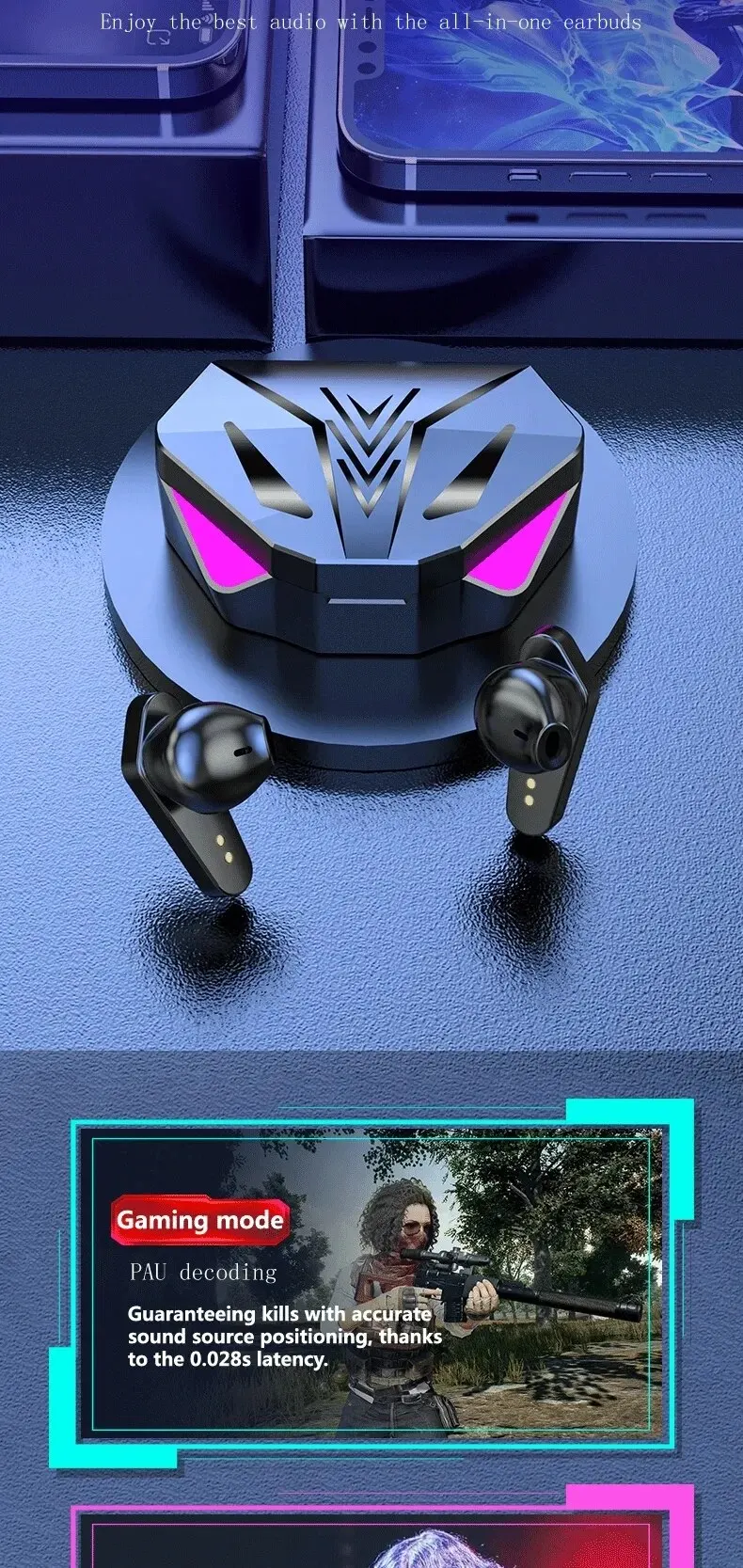 TWS Wireless Bluetooth Headset Gamer Earbuds Auriculares Gamer TWS Bluetooth – LED y Mic ¡Juega con sonido inmersivo y micrófono claro! Pantalla LED + cancelación ruido Modo gamer bajo latency ¡Sube de nivel en tus juegos!